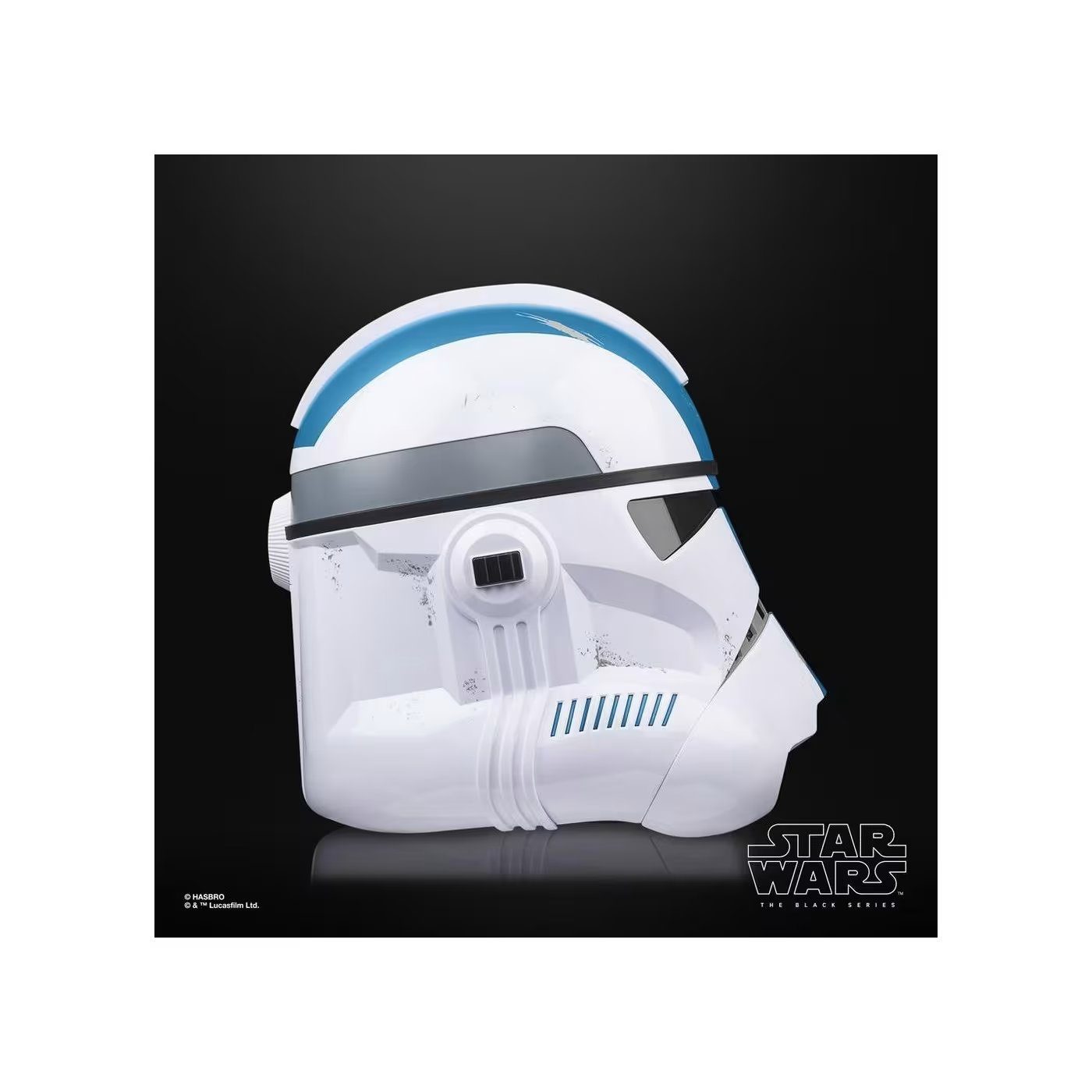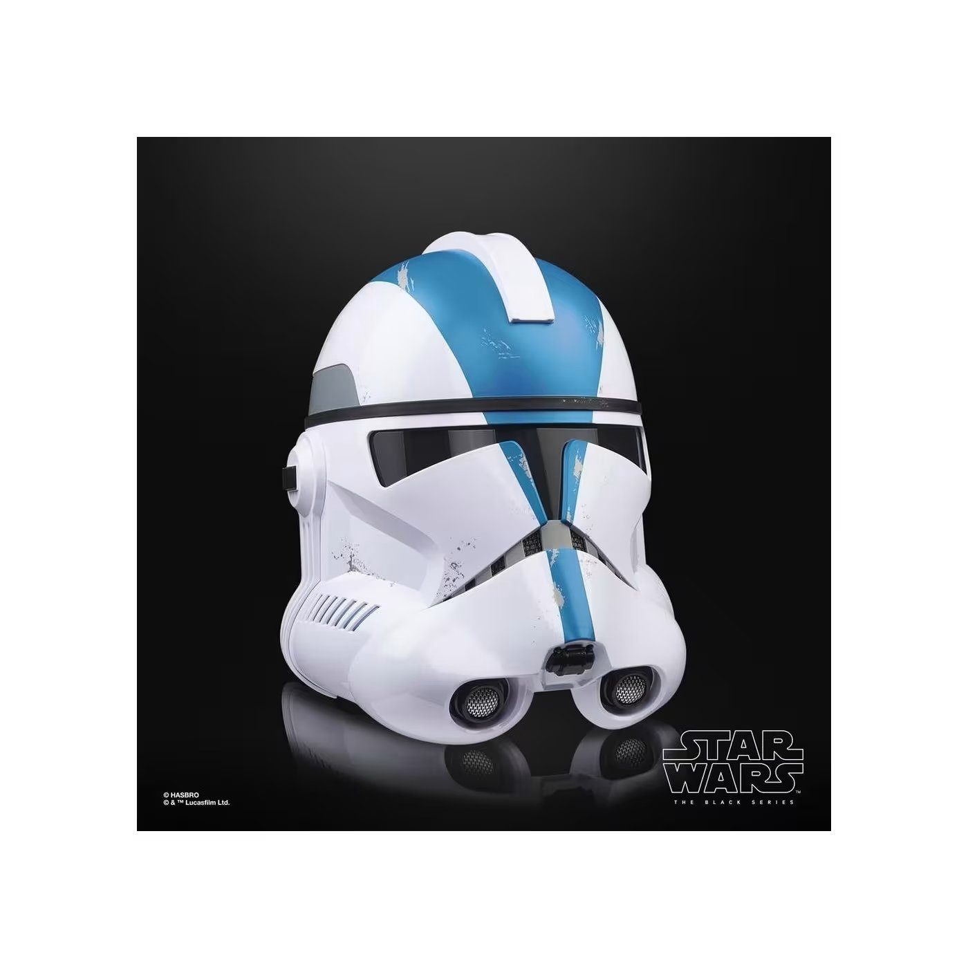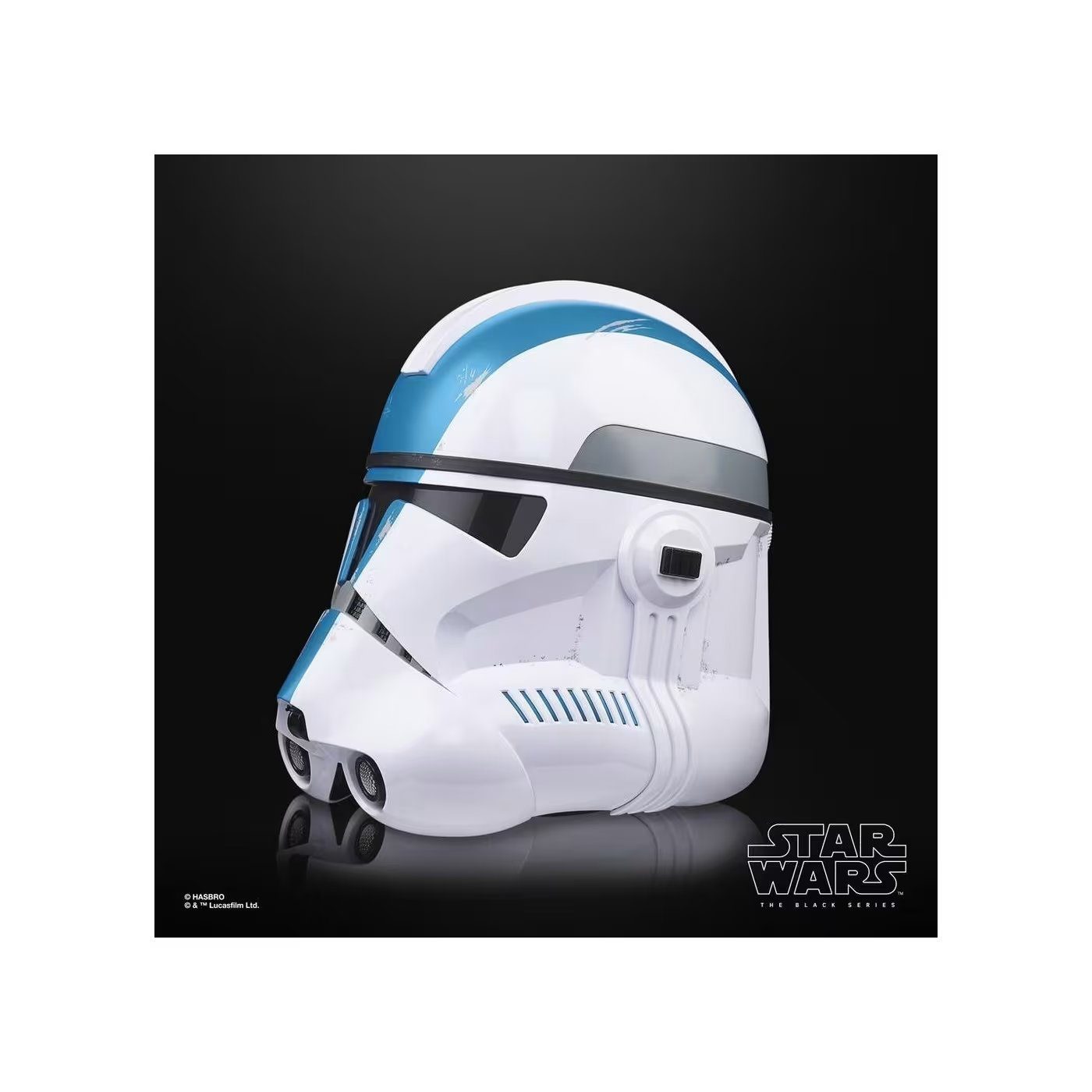 Reimagine iconic scenes from the Star Wars saga and create your own adventures with this premium electronic Clone Trooper 501st Legion helmet from the Star Wars: Ahsoka live-action series on Disney+. The helmet is intricately detailed to resemble the authentic clone trooper helmet featured in the series, making it an impressive addition for any Star Wars fan or collector.