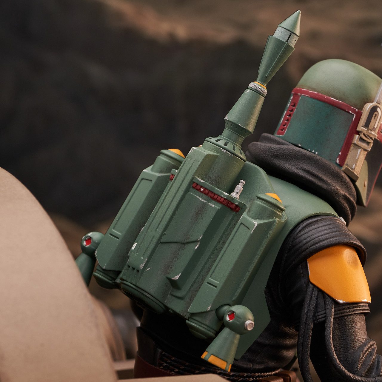 Meet the new boss! Having disposed of Bib Fortunaâ„¢ and taken over Jabba’s palace in Season 2 of The Mandalorian, Boba Fettâ„¢ is ready to take on all comers in his next adventure! Measuring approximately 12.6 inches wide and 9.4 inches tall, this statue of Boba Fett on Fortuna’s throne features high-definition digital sculpting and hand-painted details. Limited to only 1000 pieces, it comes packaged in a full-color box with a hand-numbered certificate of authenticity. By the talented team at Gentle Giant Ltd.!