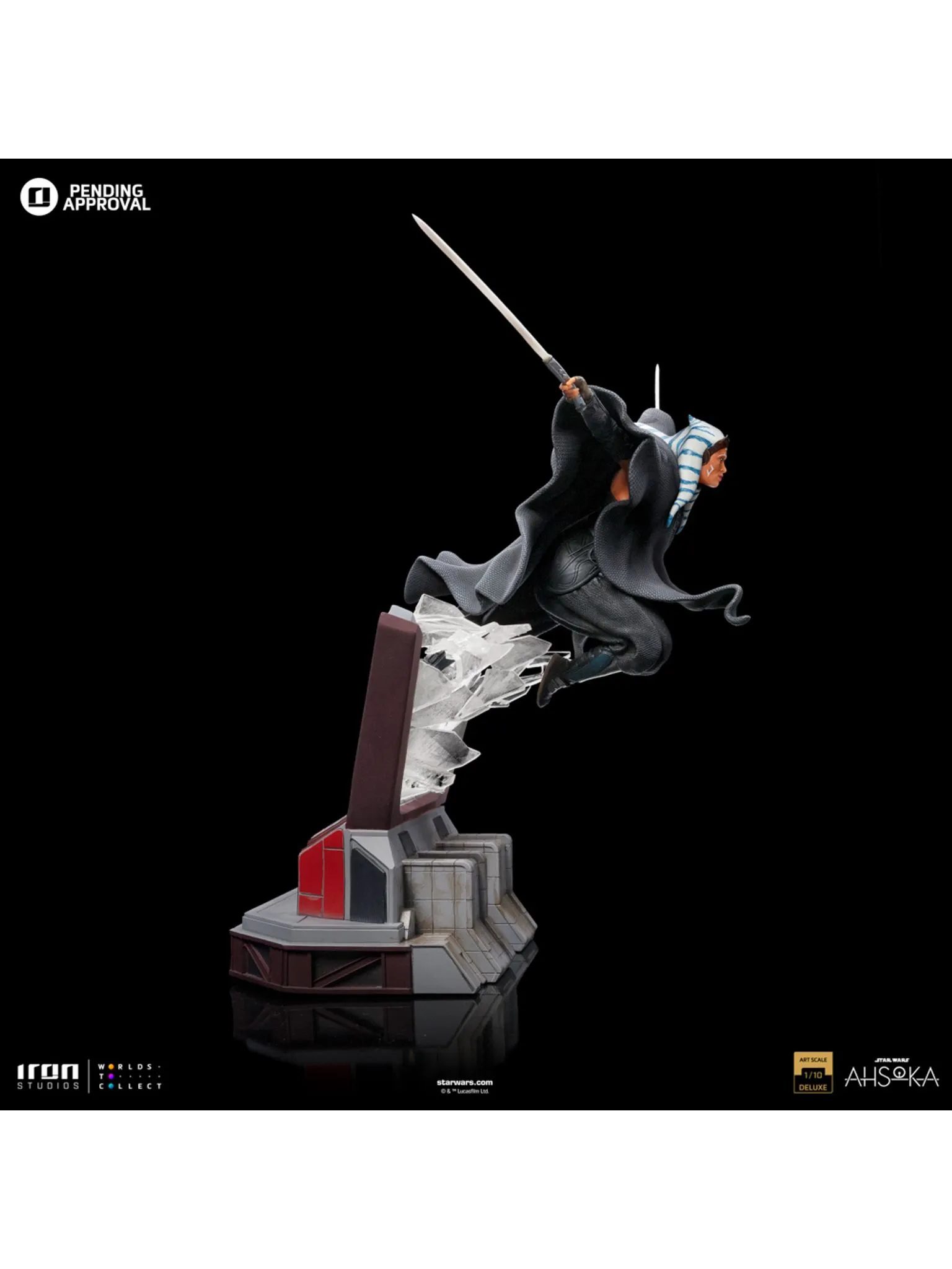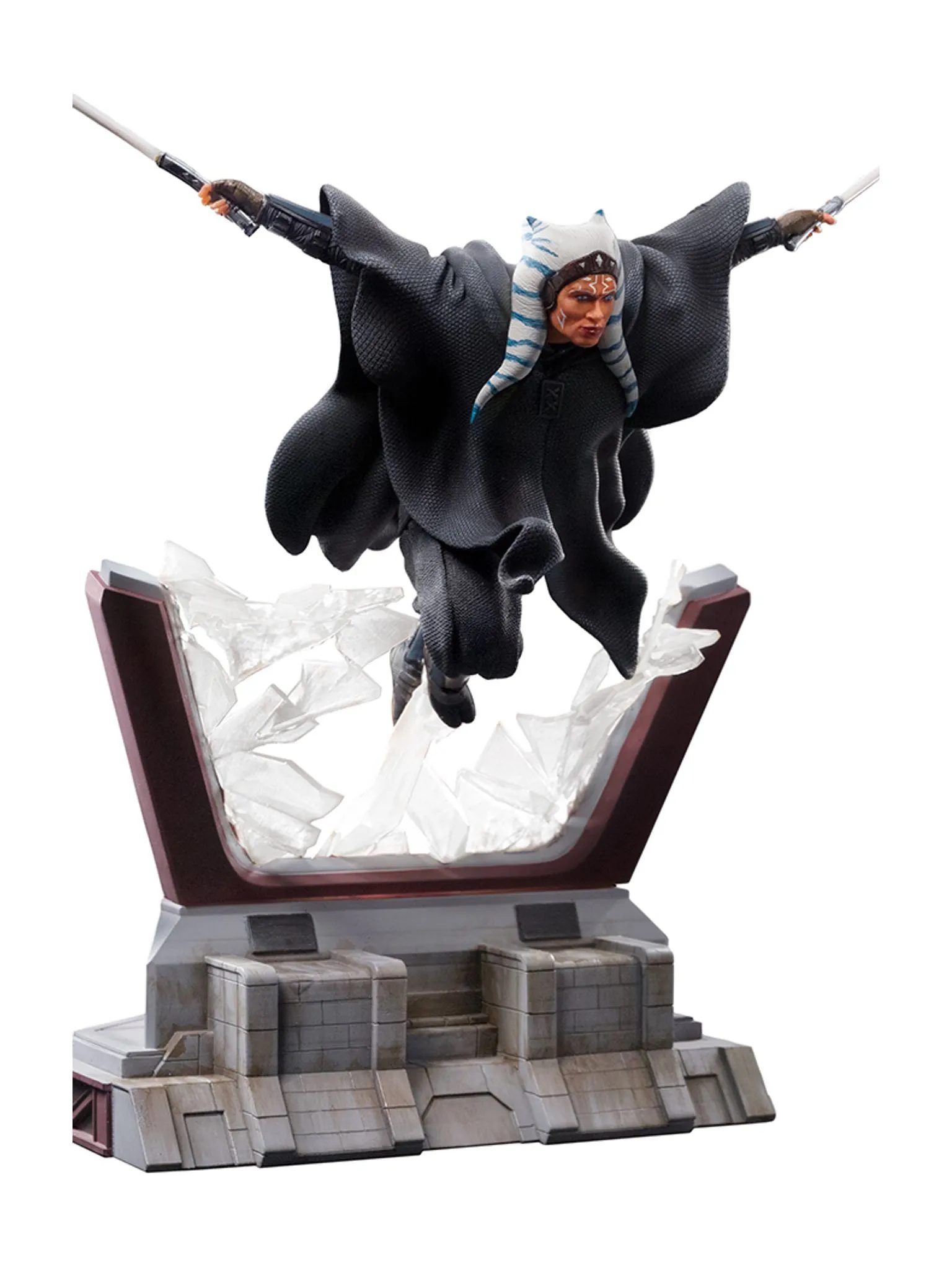 Just like a bird of prey ready to capture its food, the pariah Force-sensitive warrior jumps through a window while opening her arms, wielding two different-size Lightsabers with her body covered by a black poncho, she attacks with precision and concentration, keeping her eyes focused on her target. Trained in the past in the ways of the Jedi by Anakin Skywalker, she lost faith in those she trusted after being wrongfully accused, but she never abandoned the objectives of using her gifts to bring order, justice, and peace to the galaxy. Inspired by her own show produced and available on the streaming service Disney+, Iron Studios present the statue “Ahsoka Tano Deluxe – Ahsoka series – Art Scale 1/10” in a special celebratory edition for the show, numbered and limited to 999 statues.
