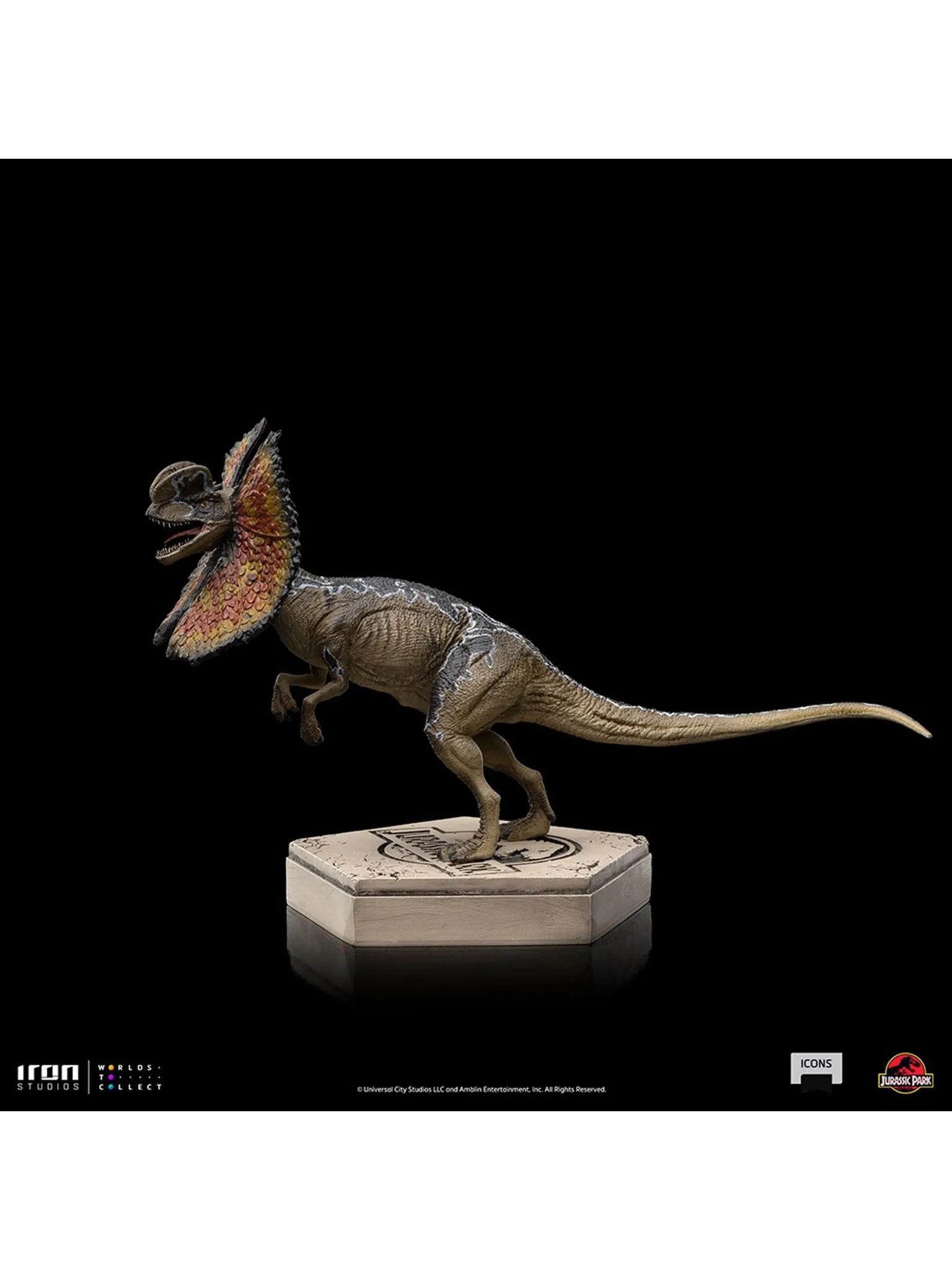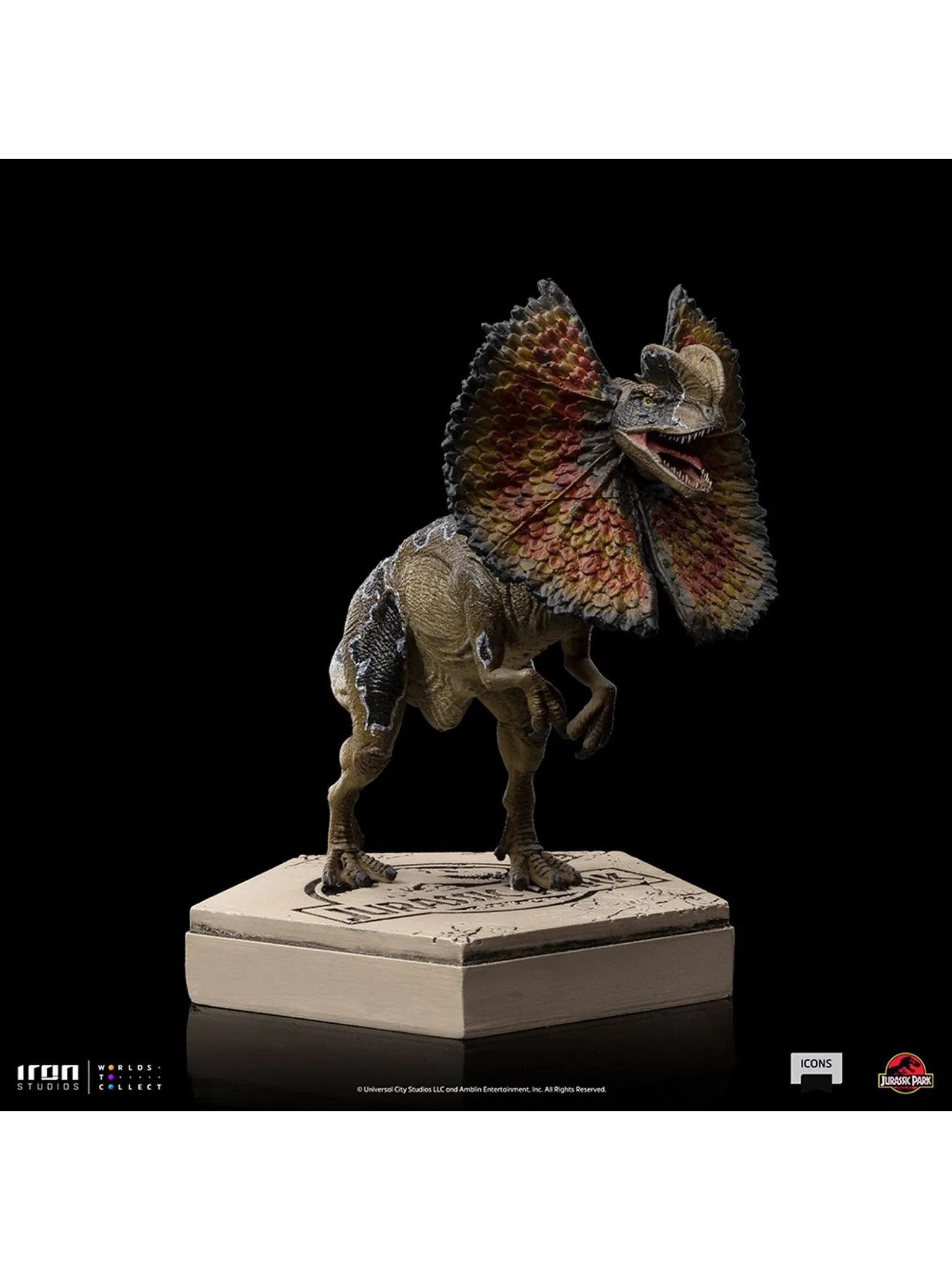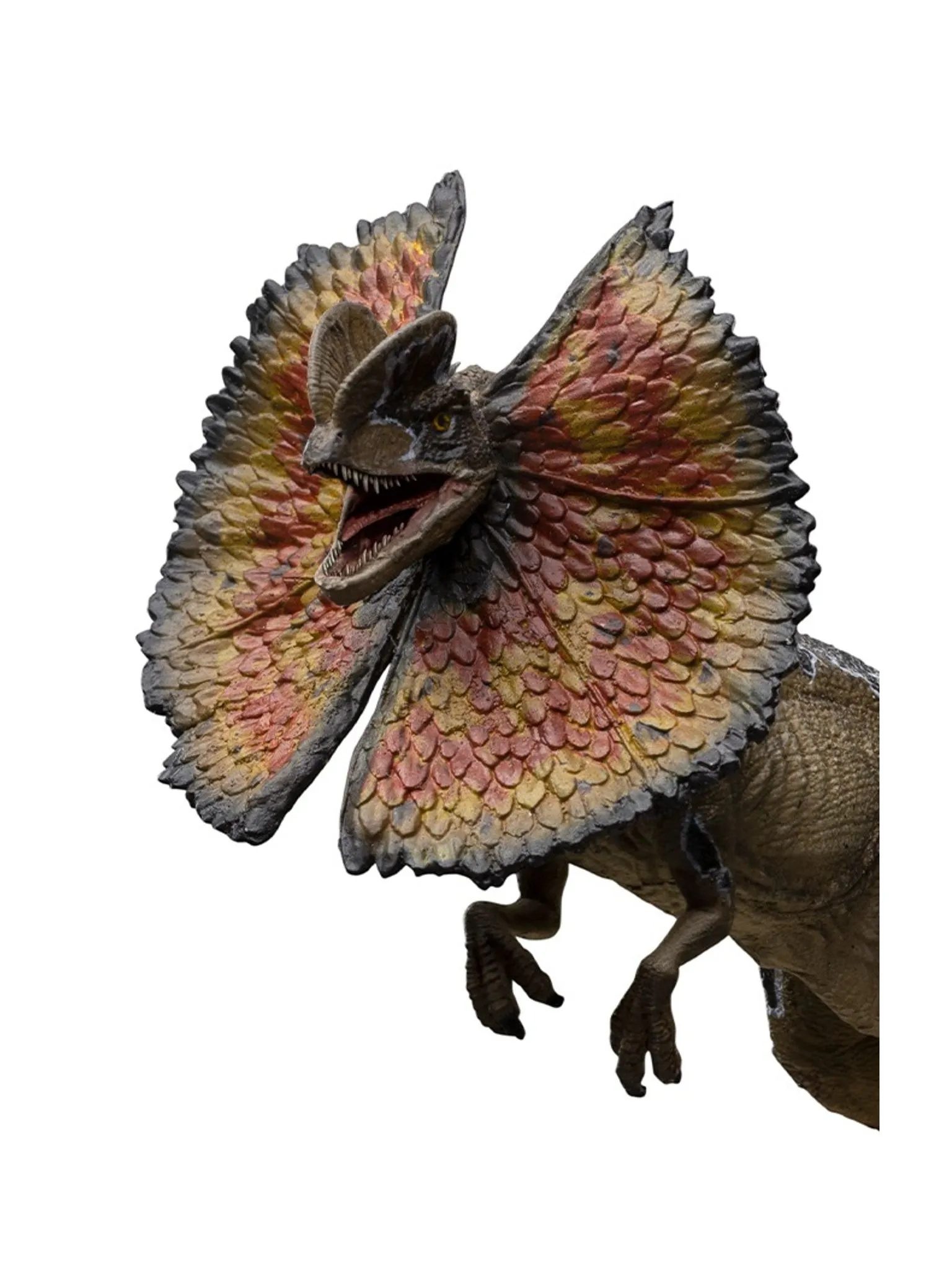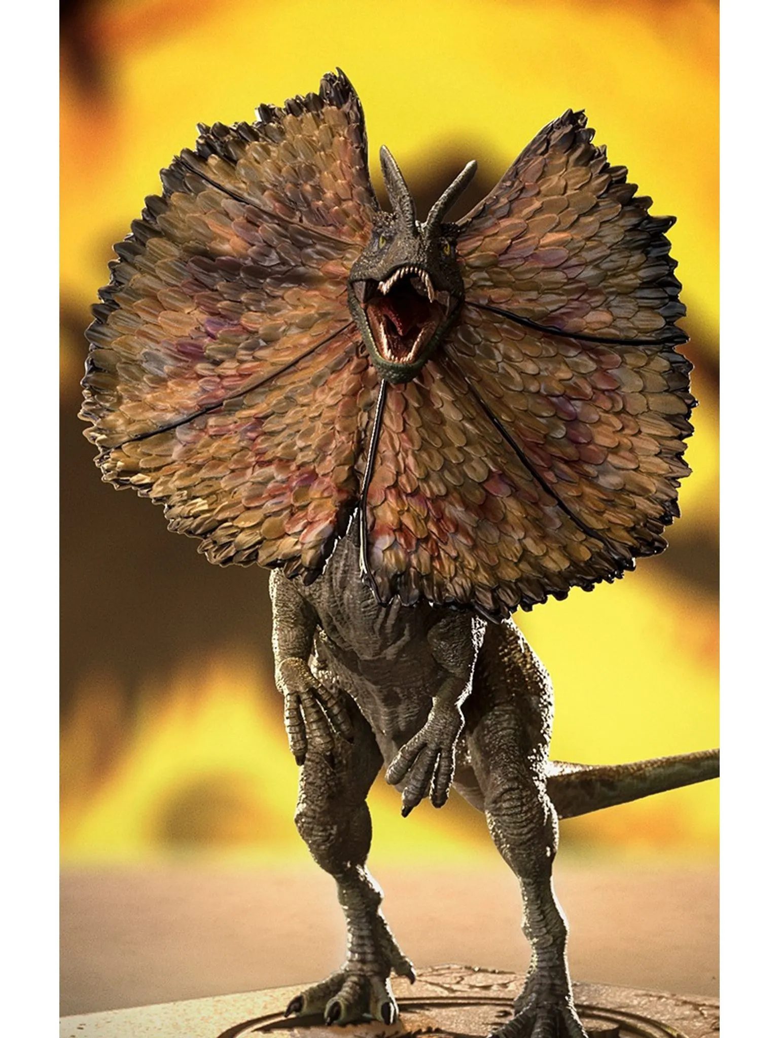 Shaking the fans hidden on its neck and hissing to announce the attack, with the ability to spit a tar poison, aiming for the eyes to stun its prey before devouring them, Dilophosaurus was the species responsible for the death of corrupt programmer Dennis Nedry. They hunt in packs while young, but only the leader has permission to slay the prey. Originally, they lived during the beginning of the Jurassic Period, before the mosquitos were confirmed by the fossil record, and with more gaps than usual in their DNA sequence, they were recreated by InGen with the Golden dart frog DNA to fill the gaps in its genetic sequence, resulting in an even deadlier creature, with traits that the original never had. Another release by Iron Studios is the statue “Dilophosaurus – Jurassic Park Icons”, adding another carnivore predator to the collection.