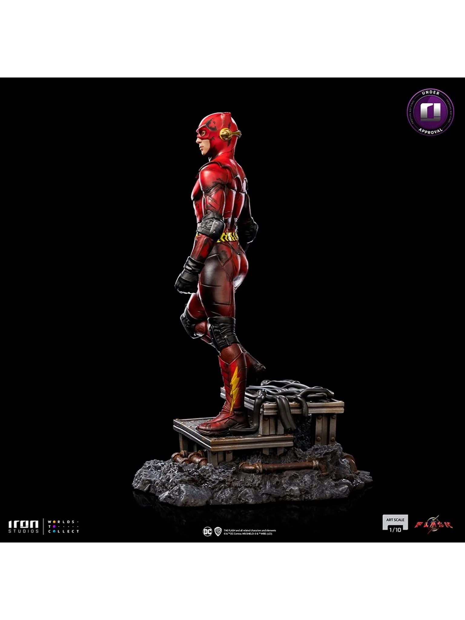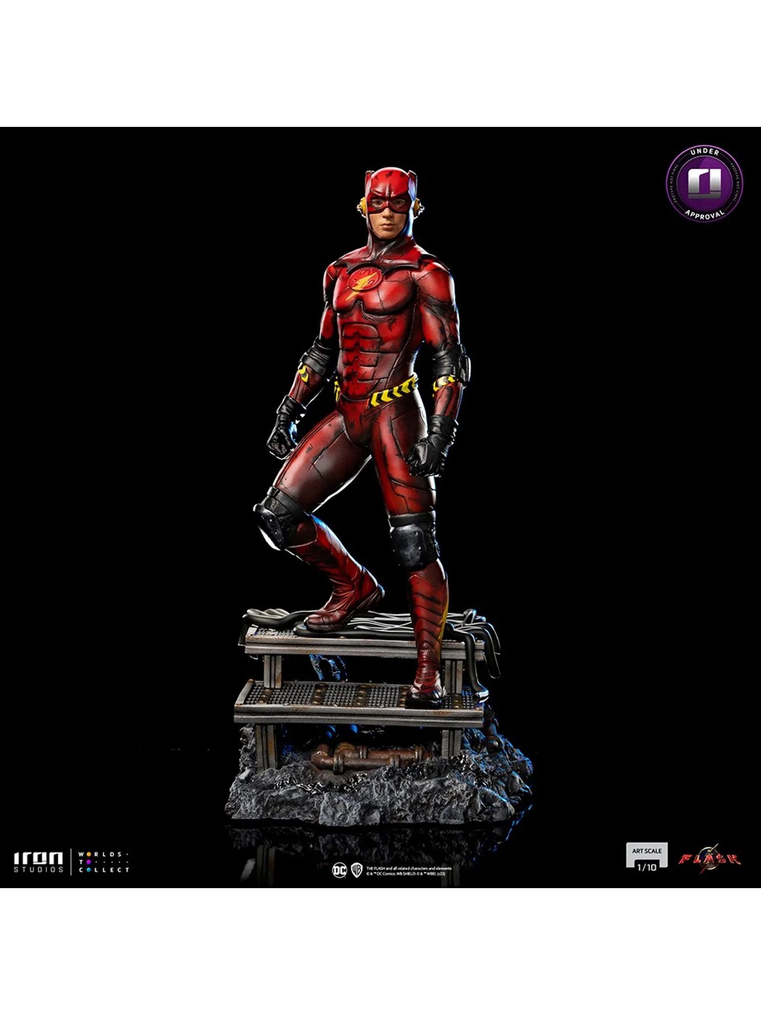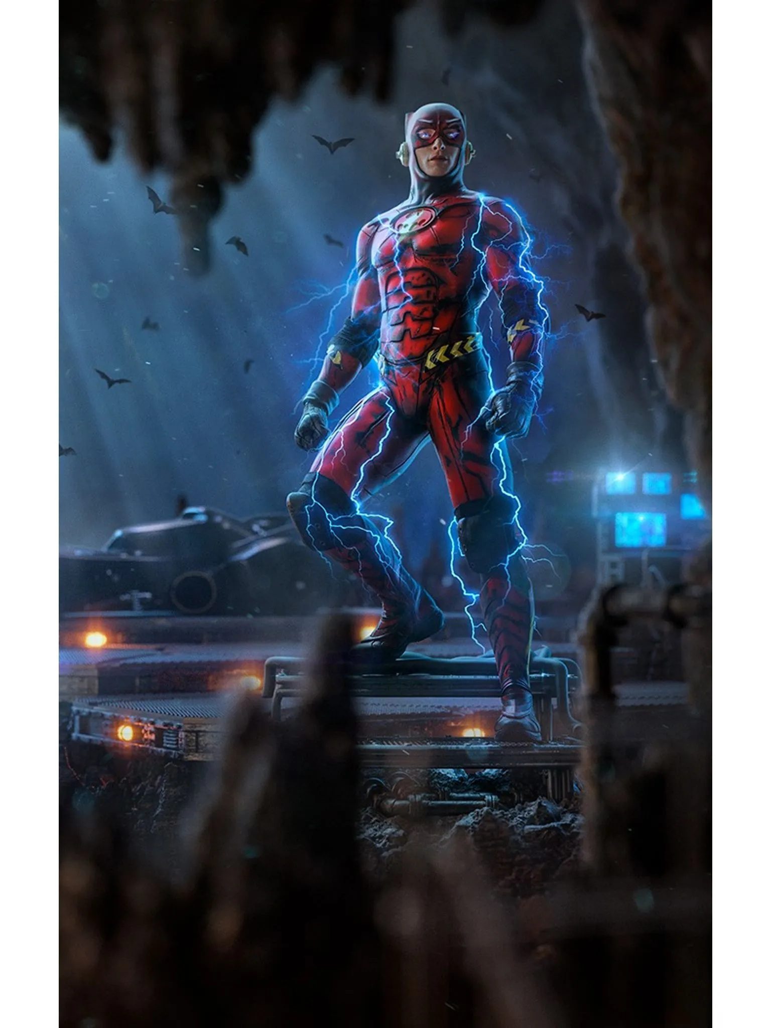 Inspired by his older version from an alternative future, the teenager Barry Allen improvises while modifying and customizing one of Batman’s costumes in a peculiar version of the scarlet speedster. Next to his other “self†from another world, more experienced and trained, he seeks help from a retired Dark Knight, inactive for years, to face a global threat in this reality. Thus, Iron Studios present the statue “Flash Alternate Version – The Flash Movie – Art Scale 1/10”, with the young alternative version of the hero, over a base of metallic platforms reminiscent of the Batcave, Batman’s base of operations and headquarters.