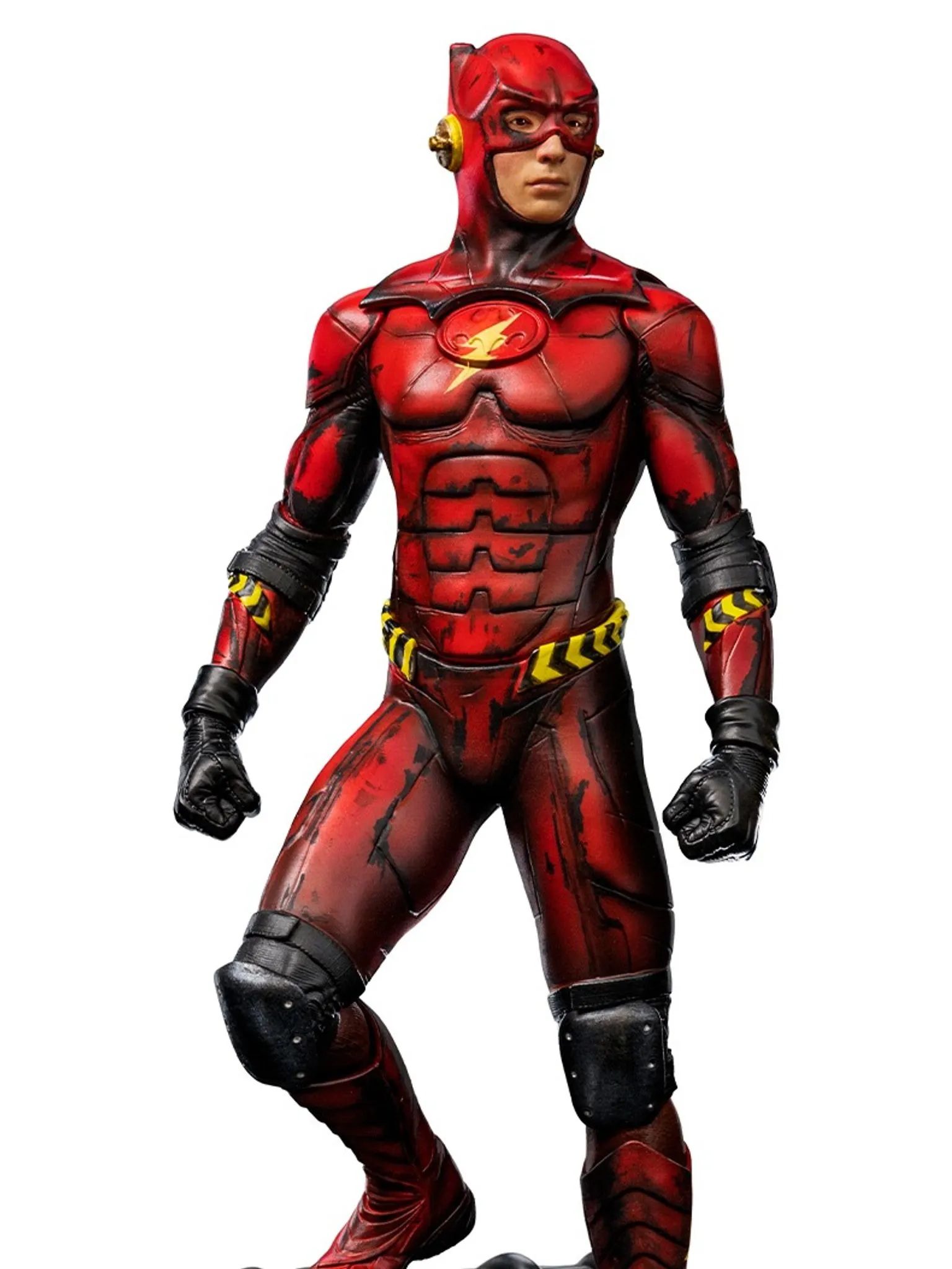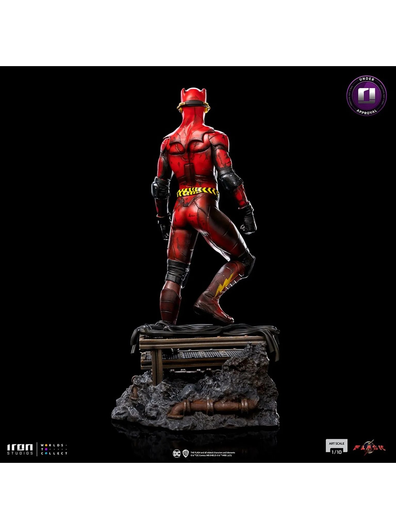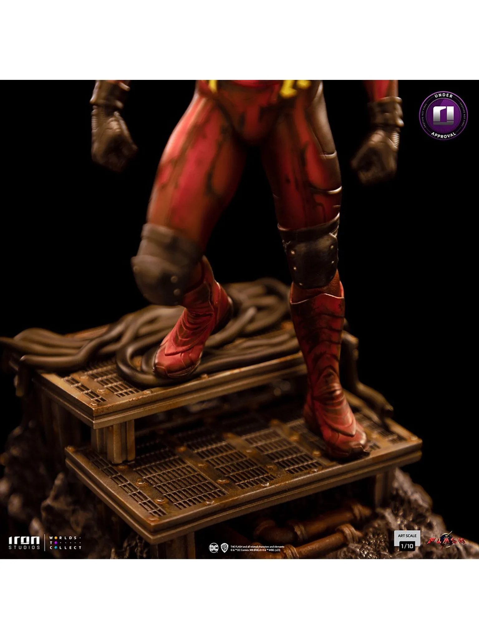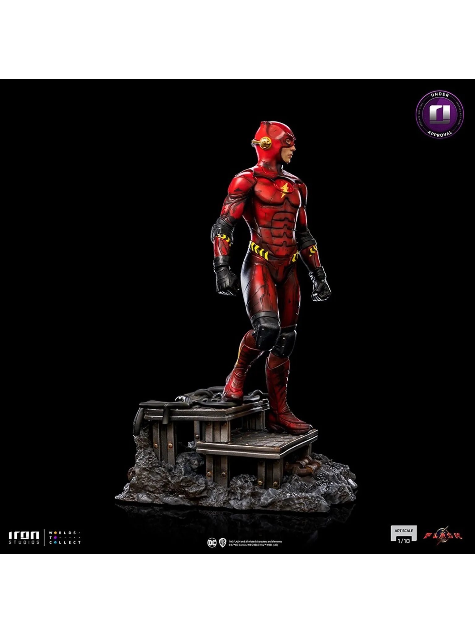 Inspired by his older version from an alternative future, the teenager Barry Allen improvises while modifying and customizing one of Batman’s costumes in a peculiar version of the scarlet speedster. Next to his other “self†from another world, more experienced and trained, he seeks help from a retired Dark Knight, inactive for years, to face a global threat in this reality. Thus, Iron Studios present the statue “Flash Alternate Version – The Flash Movie – Art Scale 1/10”, with the young alternative version of the hero, over a base of metallic platforms reminiscent of the Batcave, Batman’s base of operations and headquarters.