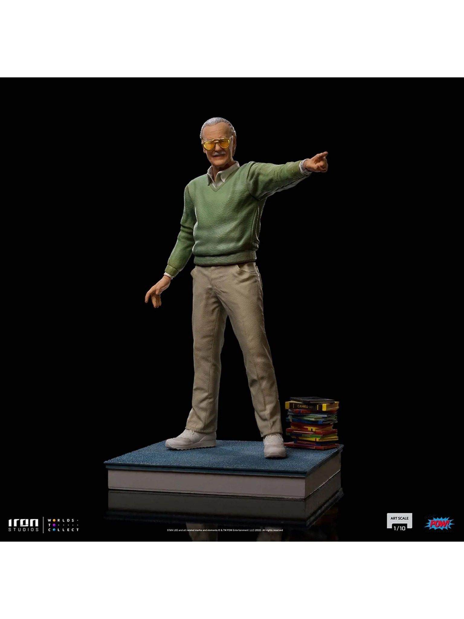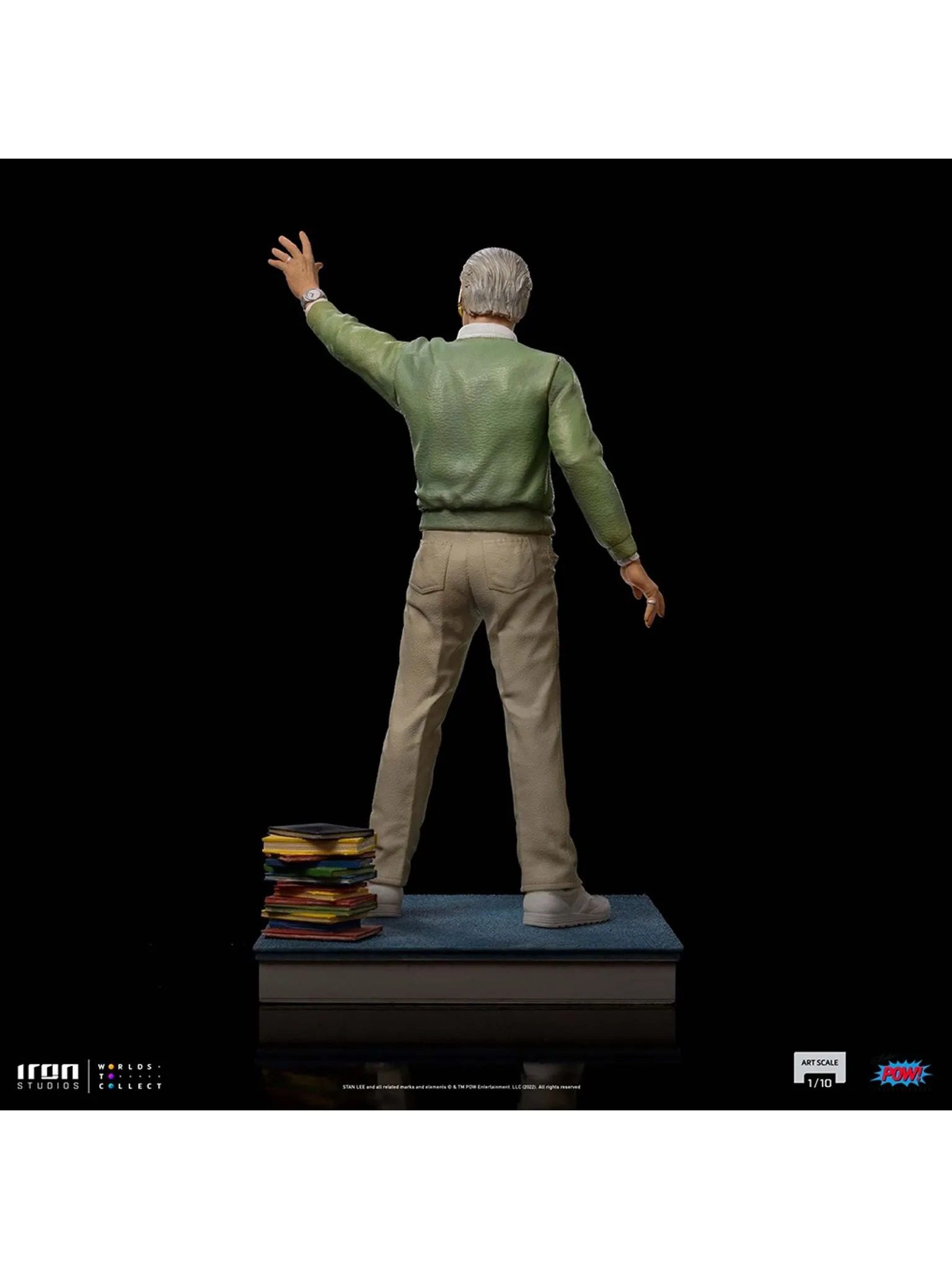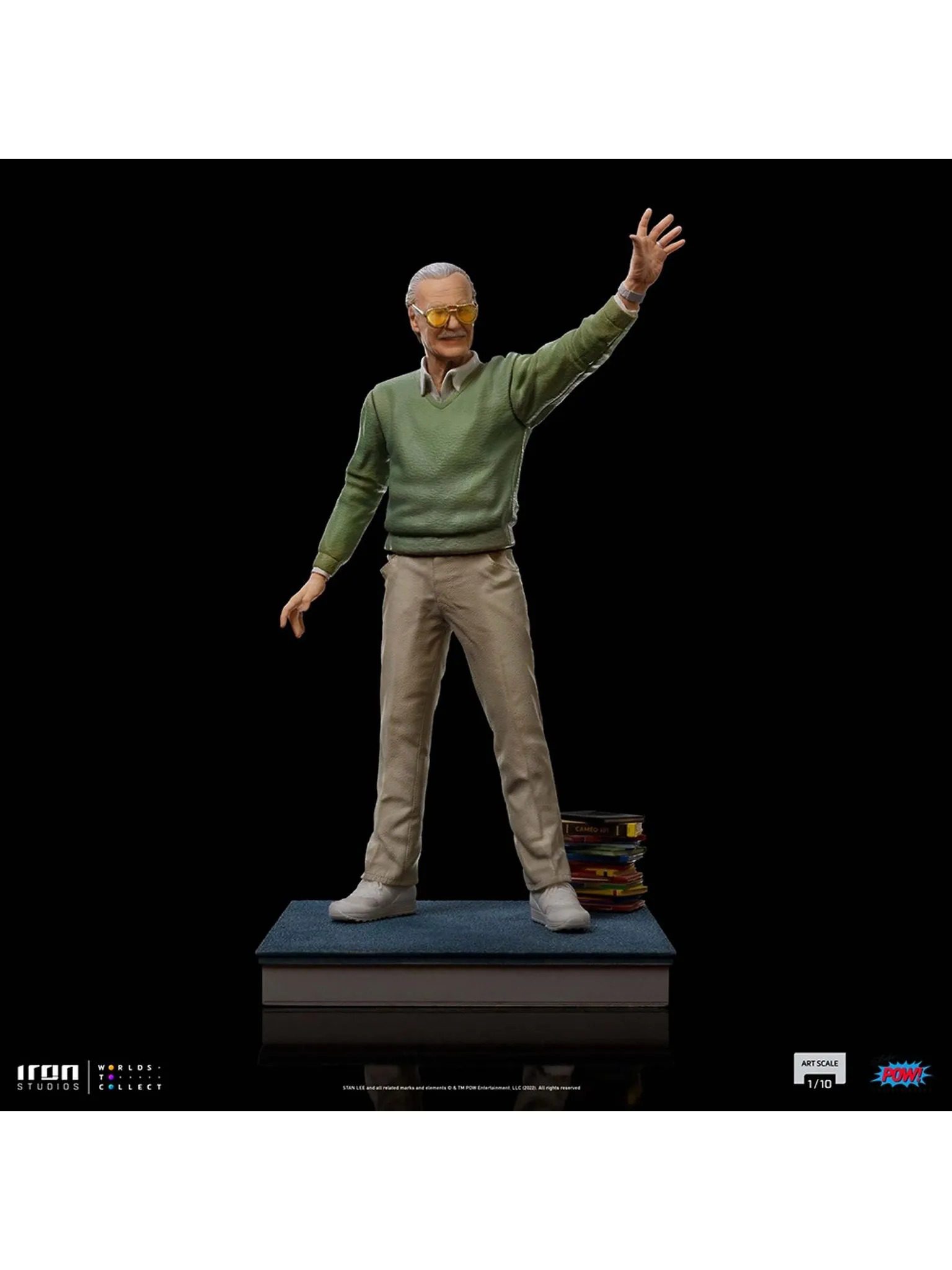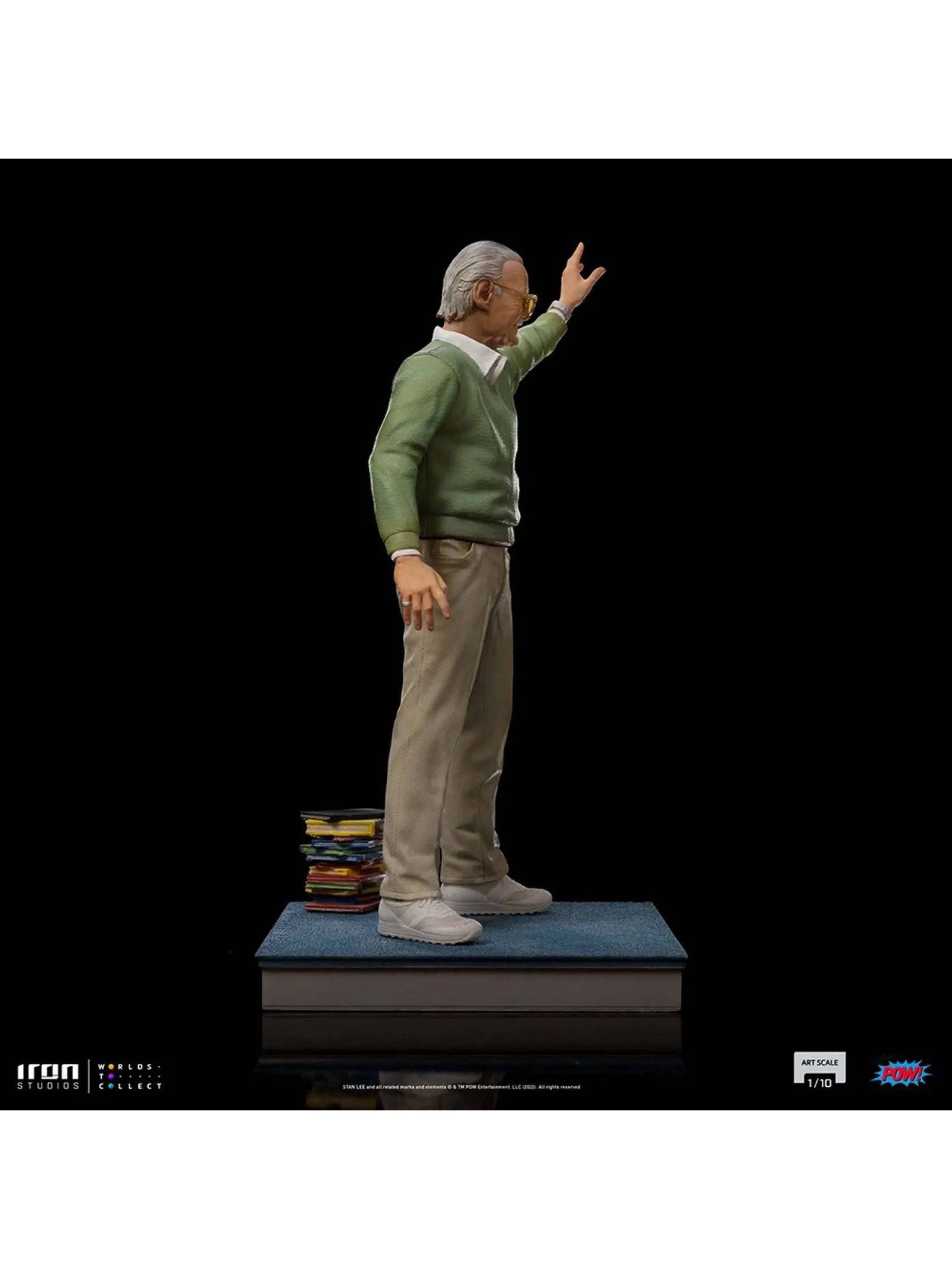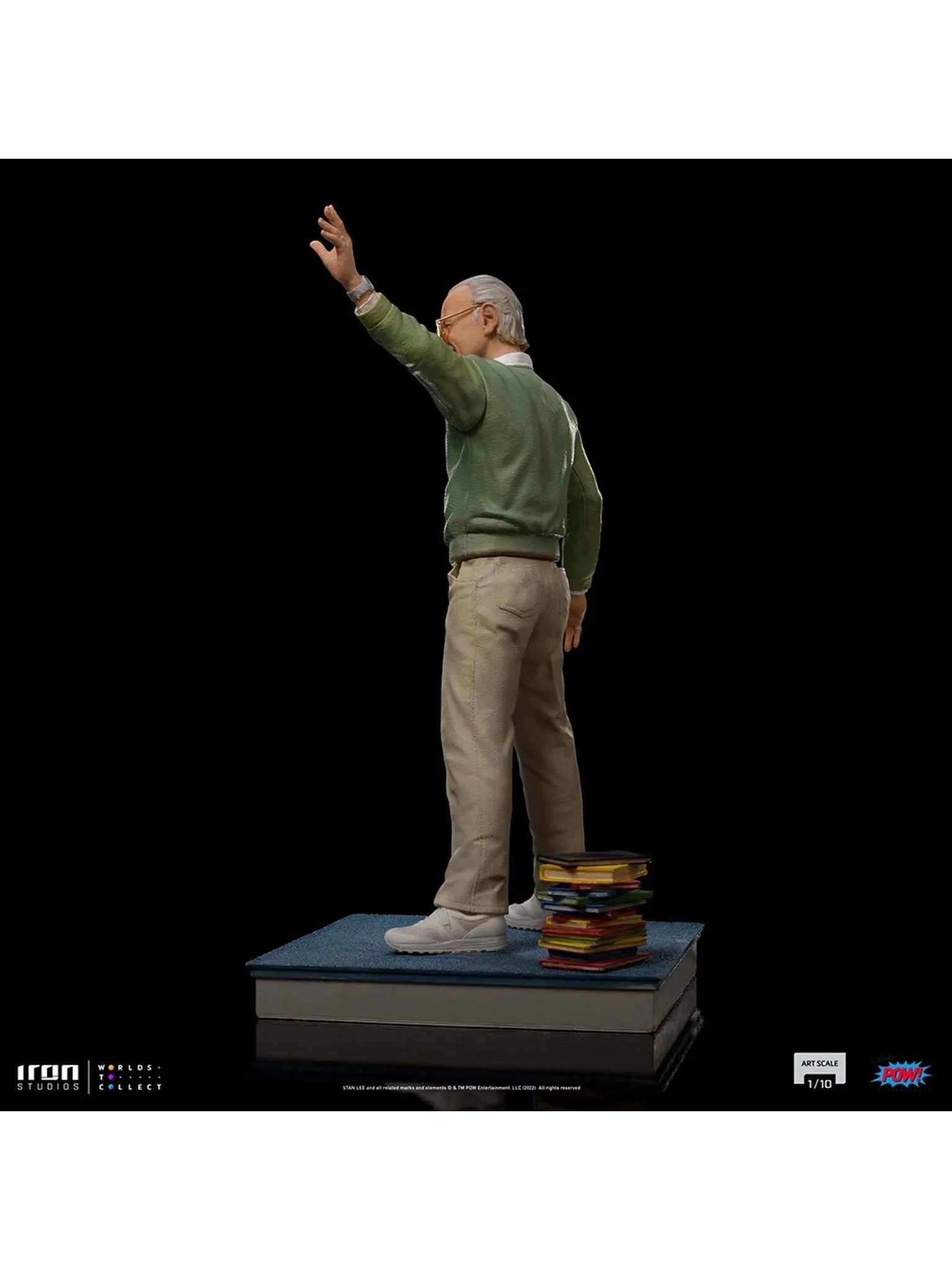 Pointing out to a horizon filled with amazing possibilities, waving for a countless legion of fans and admirers, directing the path of success for the worldwide pop culture, thanking the partnership of great master illustrators, showing off his most incredible and memorable creations, acknowledging his prestige, or indicating which superheroes will always be present as successes on the collective imaginary, always with his unmistakable pair of glasses, his inseparable mustache, and his unforgettable smile and youthful spirit, Iron Studios pay tribute once more to the late master of comics and an architect of a universe of superheroes, proudly presenting the statue “Stan Lee Legendary Years – Pow! Studios – Art Scale 1/10”, kindly celebrating his legacy, with respect and admiration to the genius creator of dreams, in the year that his legend completes 100 years.