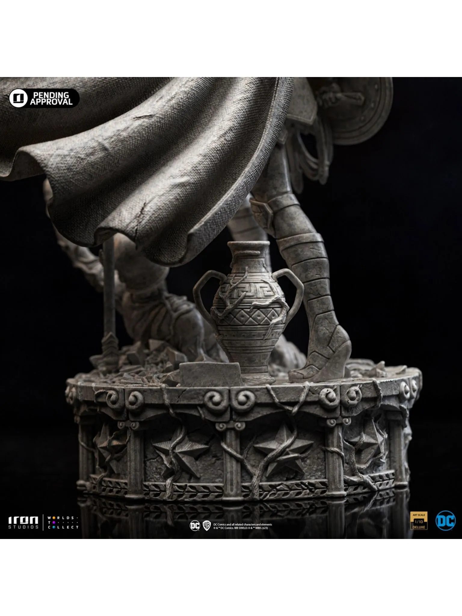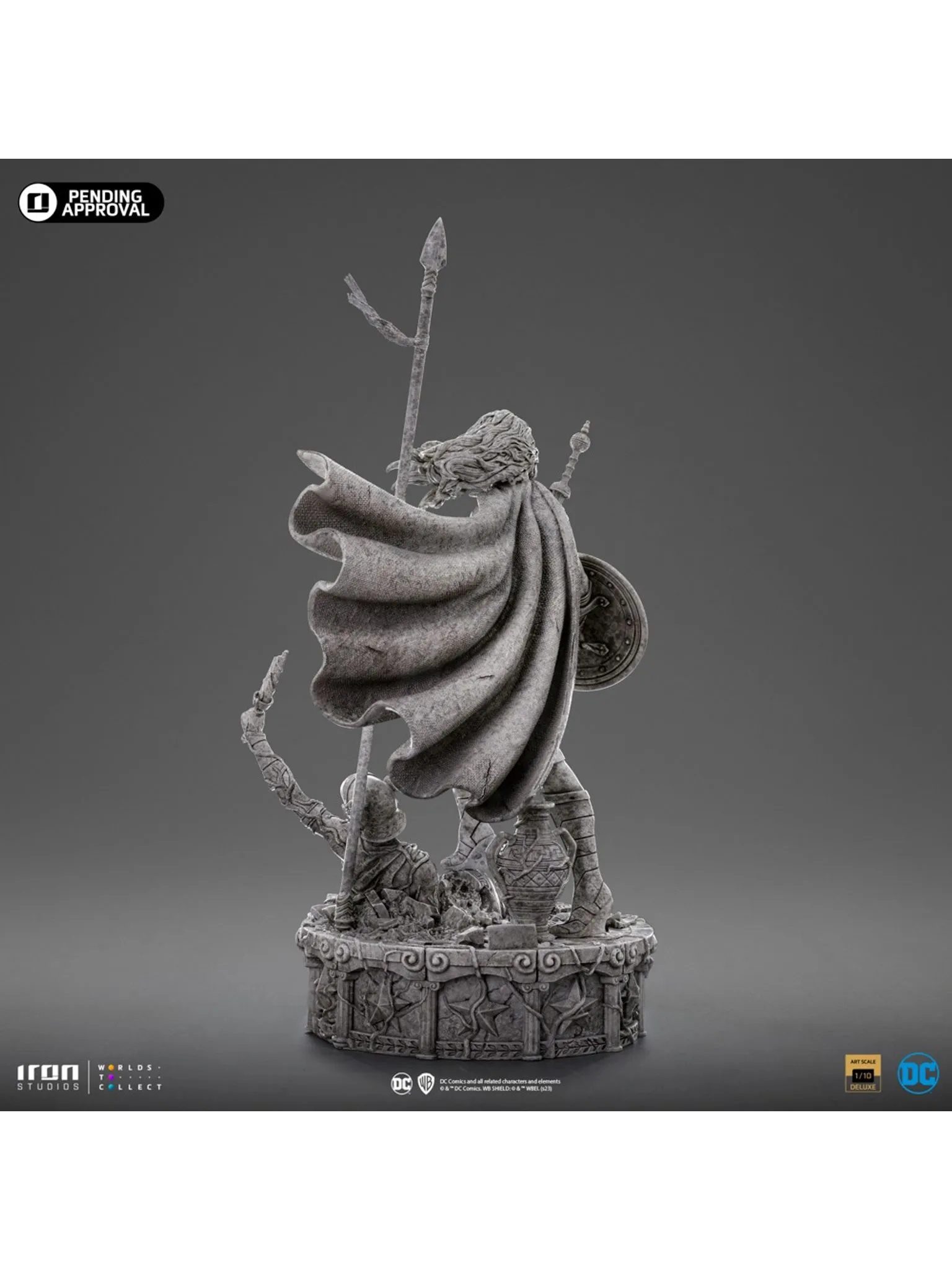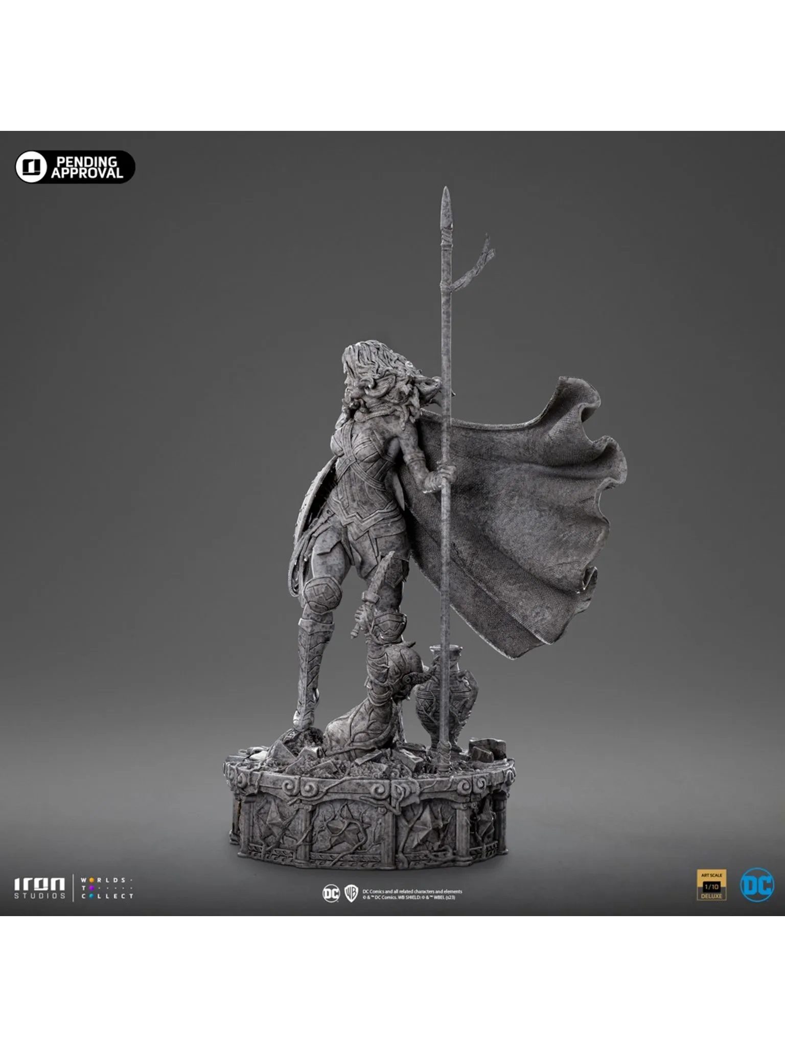 Amid roots and tendrils of ground vegetation embracing ancient broken vases and urns, next to the remains of a fallen statue of Hermes, the Greek god of speed, in a set of an ancient temple in ruins related to the mythical Mount Olympus, the majestic figure of a warrior goddess stands out in the form of a marble-toned statue wielding a long spear in her left hand and protecting her right arm with a powerful shield decorated with her symbol. With a long cape and armed with a sword on her back and the mystical Lasso of Hestia on her waist, on a base decorated with Greek columns all around with her symbolic star sculpted between them and her logo on the front, Iron Studios proudly presents the variant statue “Wonder Woman Unleashed (Marble Color Variant) – DC Comics – Art Scale 1/10”, featuring the greatest superhero of the DC universe in an extremely detailed sculpture, on a base full of mythological elements that refer to ancient Greece, following the standard of excellence and luxury in the 1/10 scale of Iron Studios’ Unleashed line. Figure details: Created for the Unleashed line, the high-quality line that takes the 1/10 scale to a new standard of excellence, replicating the color and texture of marble, the statue Wonder Woman Unleashed (Marble Color Variant) – DC Comics – Art Scale 1/10 measurements are 11.1 in (H) x 5.9 in (W) x 6.4 in (D) – 2.8 lbs., which ensures an impressive display of the figure in any environment. Special features: The statue Wonder Woman Unleashed (Marble Color Variant) – DC Comics – Art Scale 1/10 will be produced in limited edition. The diorama base present rich details inspired by the original references. Materials and finishing of the piece: Just like all the other statues manufactured by Iron Studios, the statue Wonder Woman Unleashed (Marble Color Variant) – DC Comics – Art Scale 1/10 is made with high-quality materials such as Polystone, and may contain parts in resin, PVC, metal, and fabric. In the finishing, the hand painting ensures a unique and exclusive artistic touch to satisfy any collector.