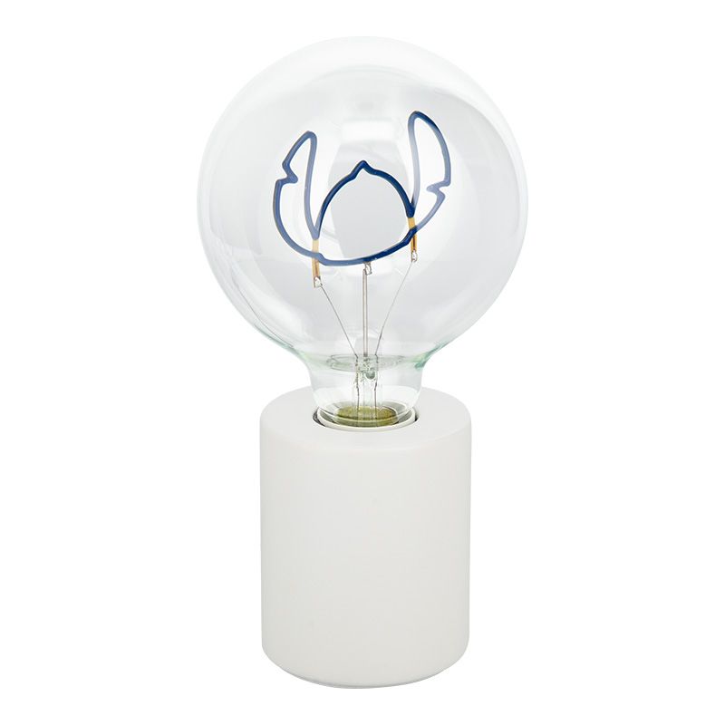 The lamp stands at 24.3cm (9.6″) tall and comes with a ceramic base. Its decorative E27 LED bulb features a playful Stitch shaped filament that lights up with a fun blue glow. Housed in a clear glass bulb, it’s perfect for adding character to any room at just the flick of a switch.