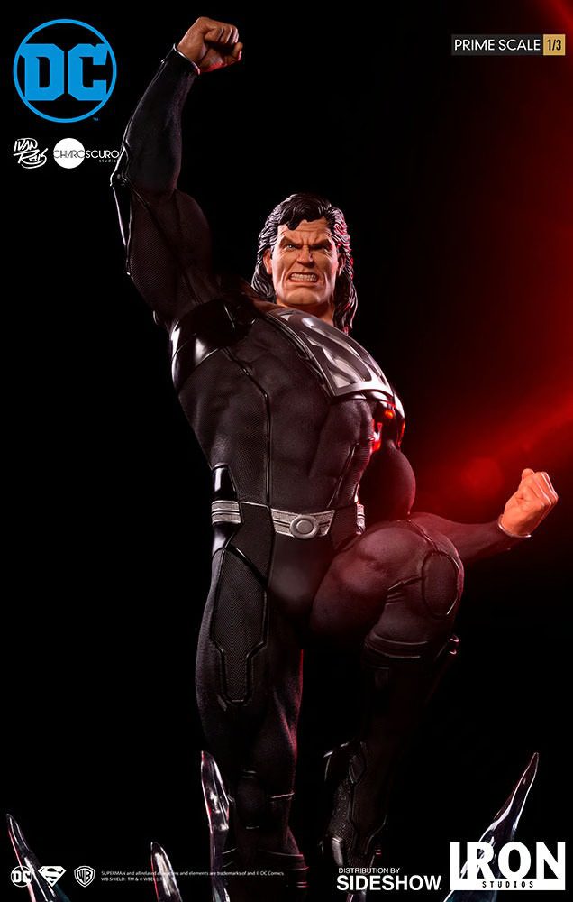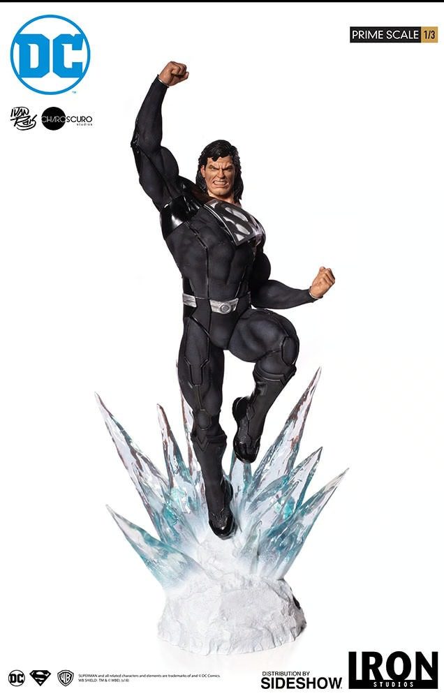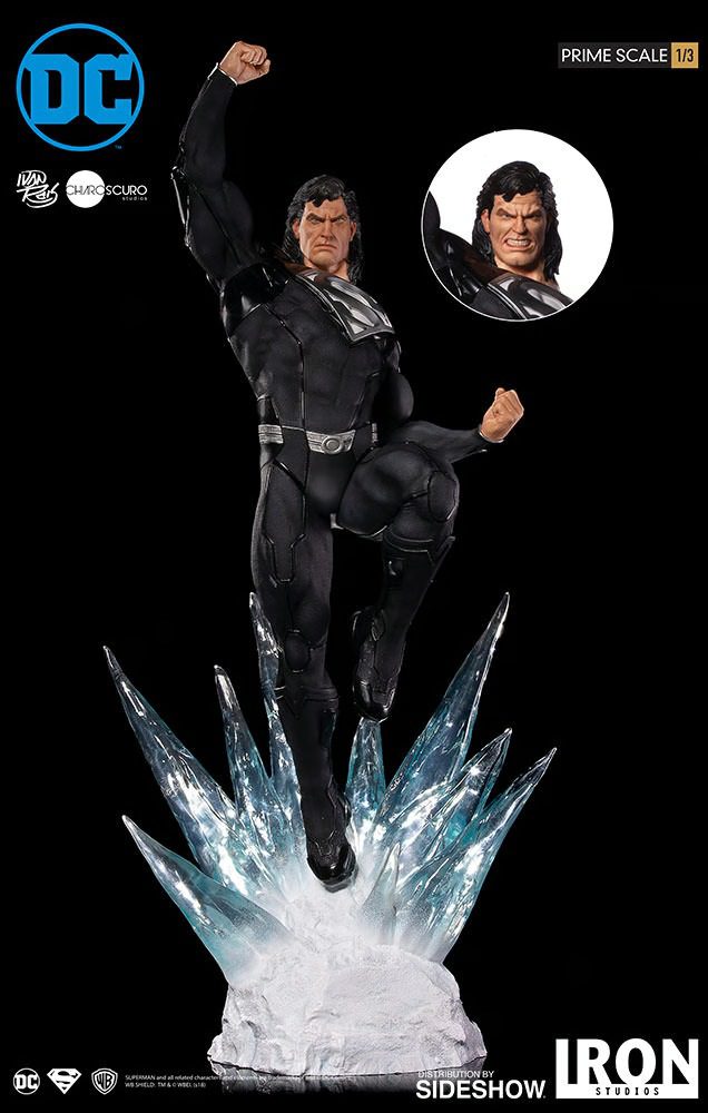 Sideshow and Iron Studios are proud to present the Superman (Black Suit) Prime Scale Statue. Based on concept art by Ivan Reis (DC Comics official artist) of Chiaroscuro Studios. This polystone statue is hand-painted and features two head options and an L