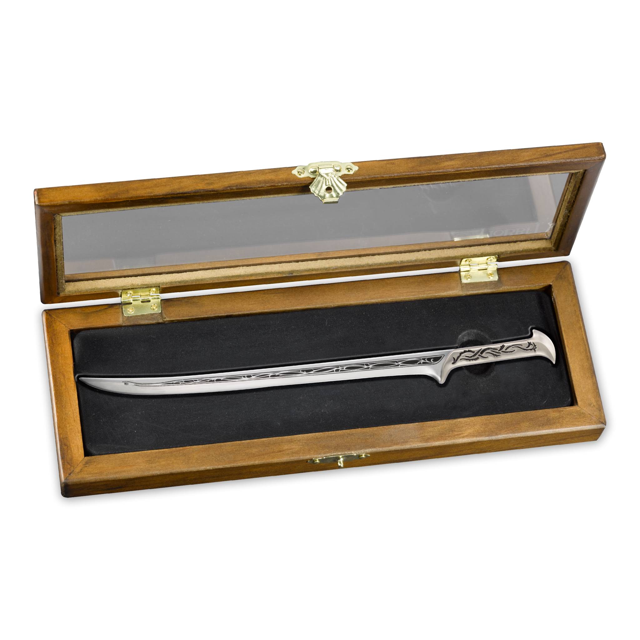 The King of Mirkwood’s Elven sword is recreated as an elegant letter opener and comes in a wooden presentation box.