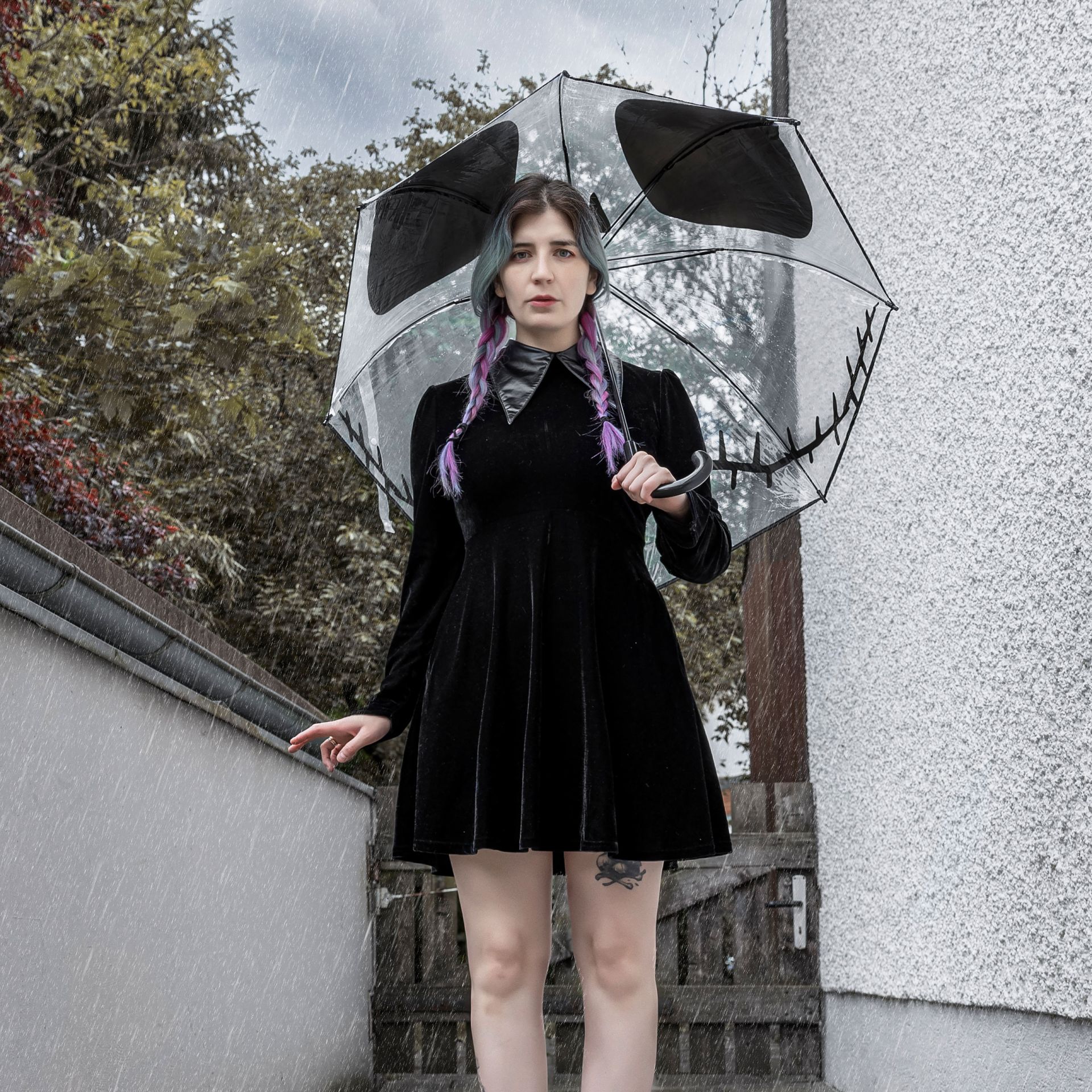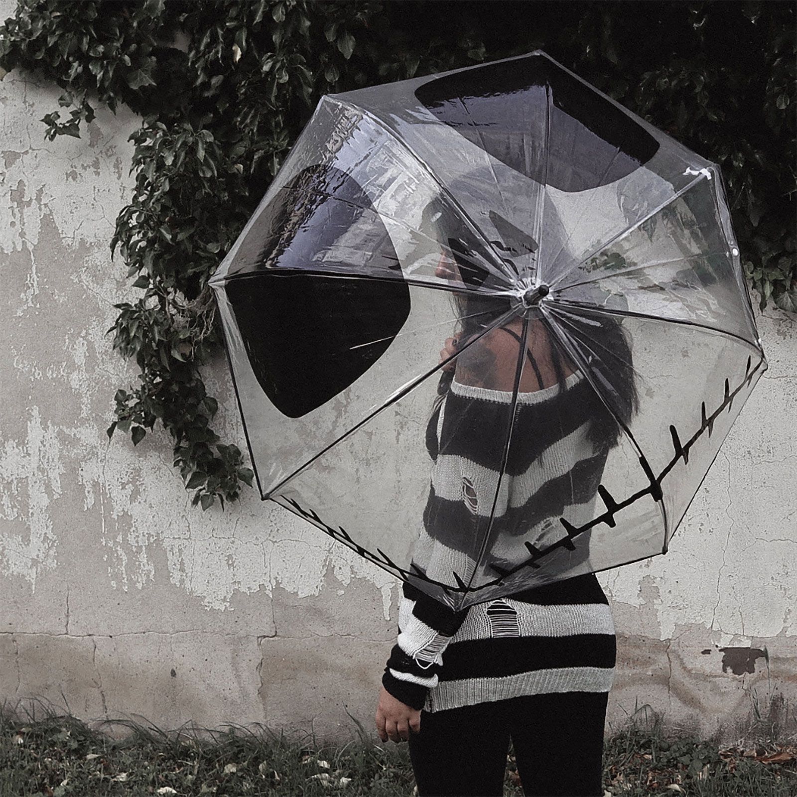 Rain in Halloween Town? Please. With this transparent stick umbrella, Jack Skellington himself grins at you—and the drizzle can only stare. You keep full visibility while Jack’s iconic face turns every puddle into a catwalk. Whether for cosplay, everyday errands, or a moonlit graveyard stroll, you’ll stay stylishly dry.