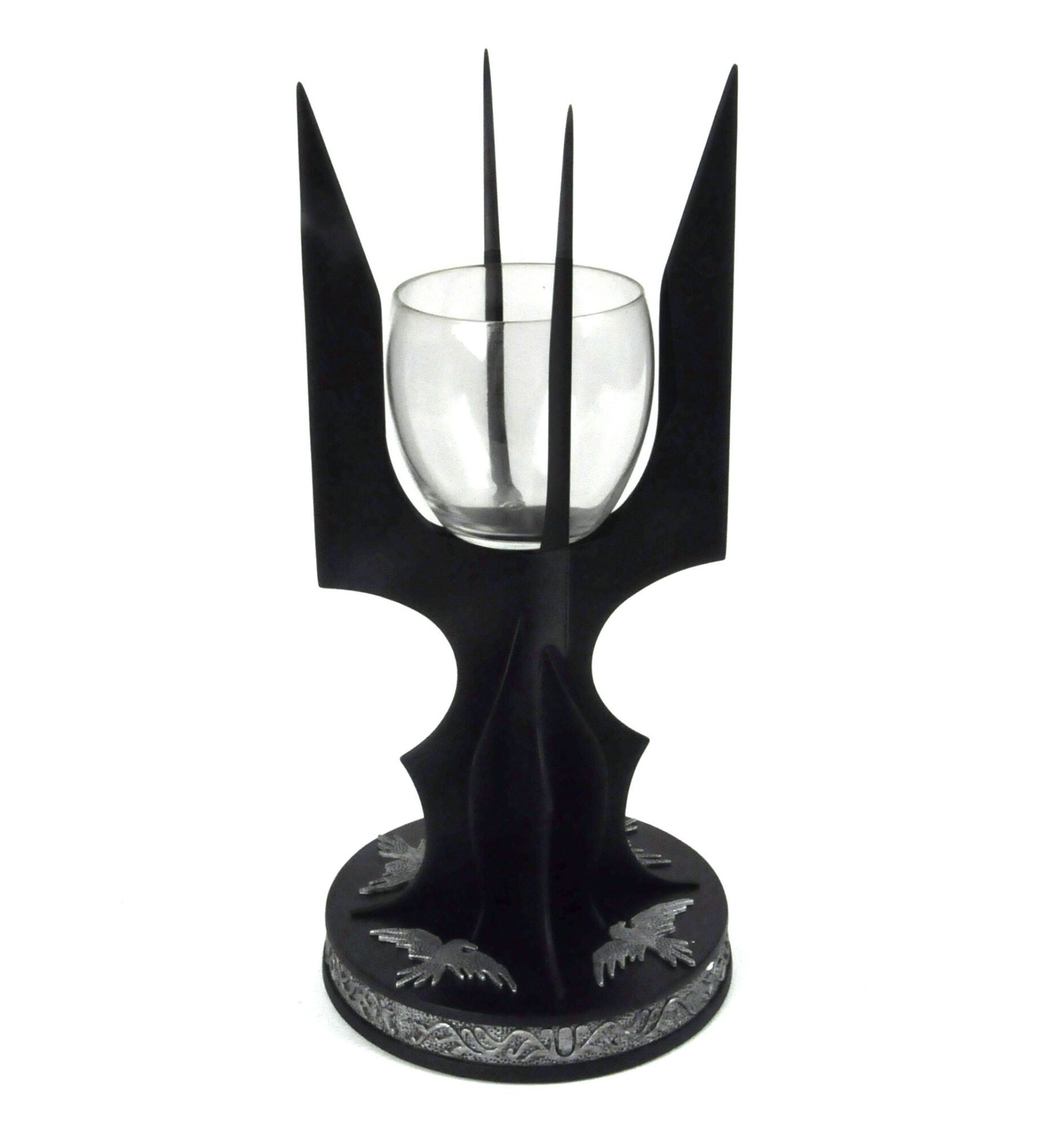 This sleek metal candle holder is inspired by the staff of the wizard Saruman the White.